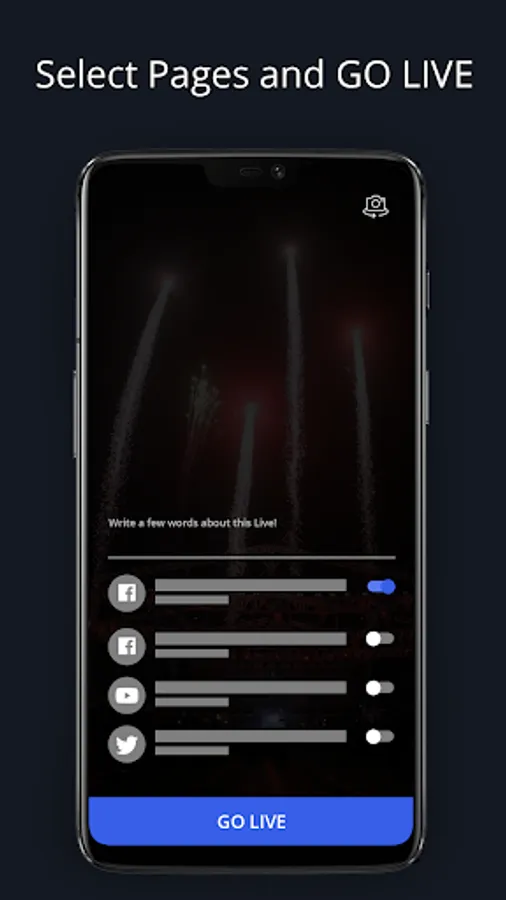 Connect your facebook pages/profile, youtube & periscope through our secured authorized integrated API. Its just one click away to go live by selecting pages and with a caption.