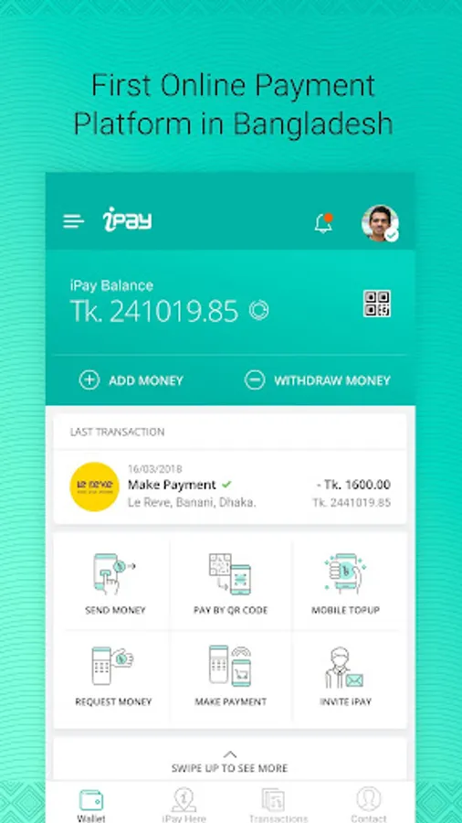 iPay has introduced QR code based payment for the first time in Bangladesh. Every transaction is secured with PIN along with two factor authentication.
