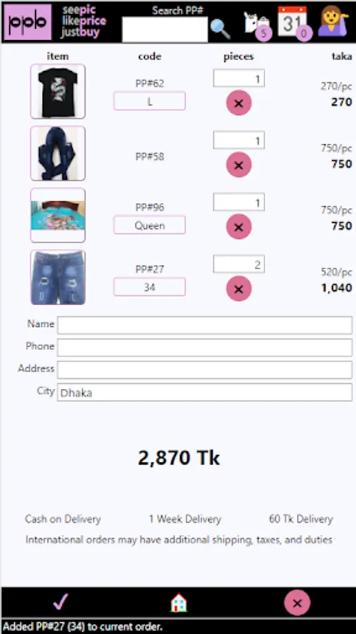Browse our catalog. See the picture. Like the price. Just buy what you like. We call to confirm the order, and deliver within a week to anywhere in Bangladesh. It's that easy!