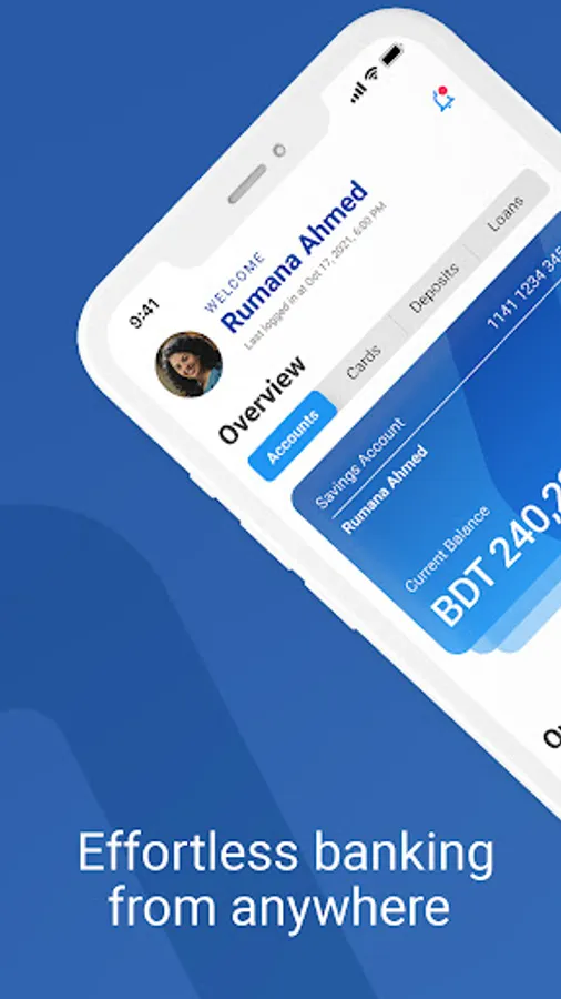 - Snapshot of your accounts, cards, deposits and loans in one screen
