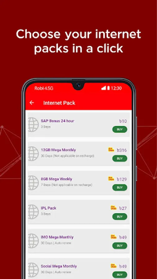 7. Buy Internet Packs, Bundles or Activate Rate Cutters in a click anytime.