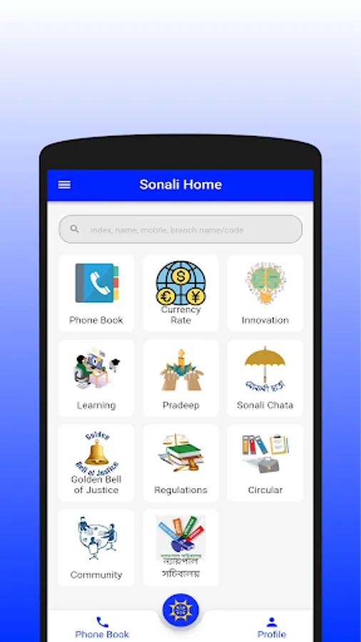 The following application is exclusively designed for Sonali bank employees, providing them with essential information about their colleagues. Although this application is publicly accessible, it is created only for the Sonali Bank users. To use this application, a Sonali bank employee must obtain a User ID and password. The application's primary objective is to share individual details, such as Name, Designation, Place of Posting, Contact Information, Blood group, and Branch Information.