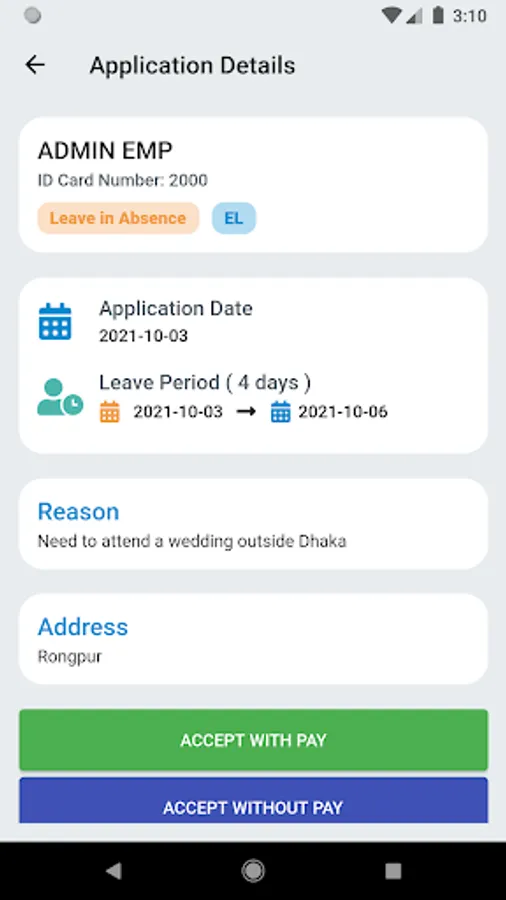 This app provides a platform for the employees to apply for leave requests, manage their leaves, and give attendance remotely. The leave and attendance requests are also handled through the app.