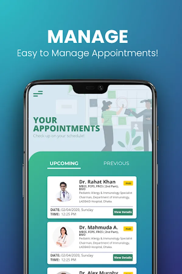 TakeMed brings specialised doctors to your needs through telemedicine. All of our enlisted doctors are expert in their field. TakeMed recognises that there is a lack of quality and efficiency in the medical health sector in Bangladesh, which is why we choose our professionals through a diverse process to ensure that international medical guidelines and protocols are followed. We understand that it can be a frustrating and time-consuming experience to get doctor's appointment these days, which is why we have developed TakeMed mobile application so that you can easily make a doctor's appointment with just a few clicks. You can make an appointment, consult with the doctor of your choice, get prescribed; all can be done with one app. Download now from Play Store!