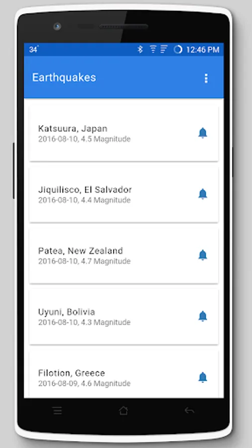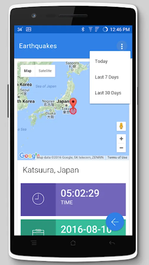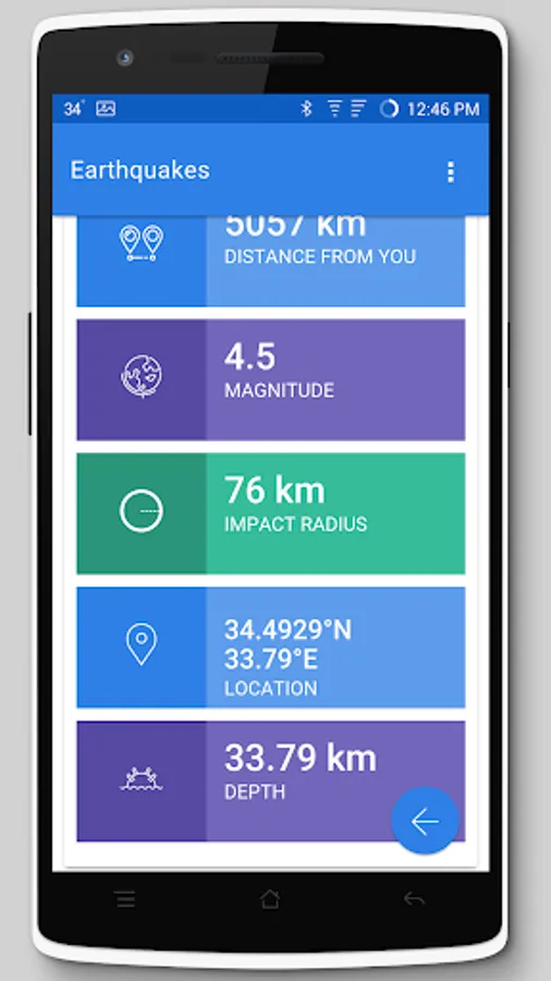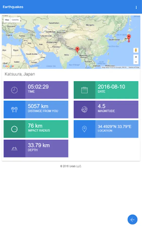 Learn about recent earthquakes around the world , get their impact radius and distance from your location. This app will show you earthquakes center and impact radius in map.