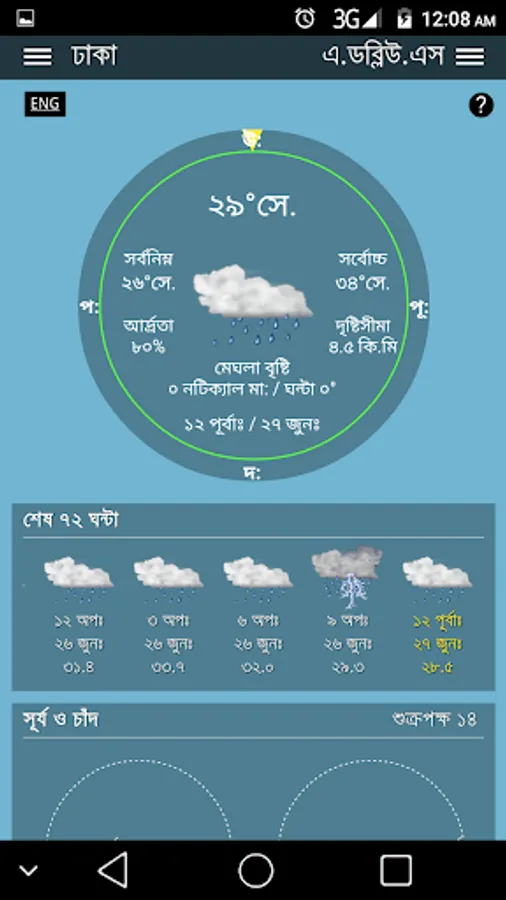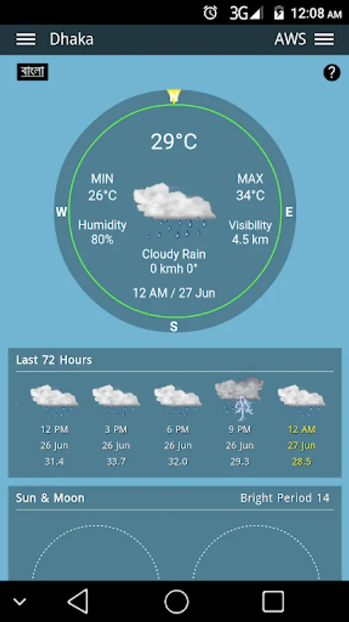 - See sunrise, sunset, wind, rainfall and temperature.