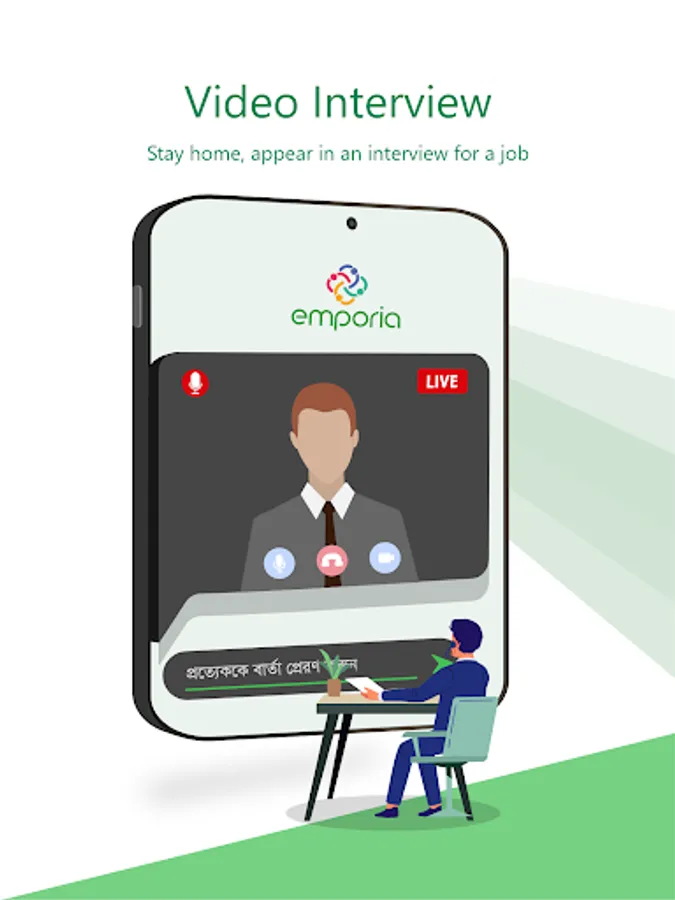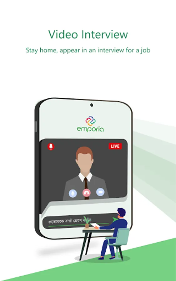 ● Video interview with Employer from anywhere with built in functionalities.