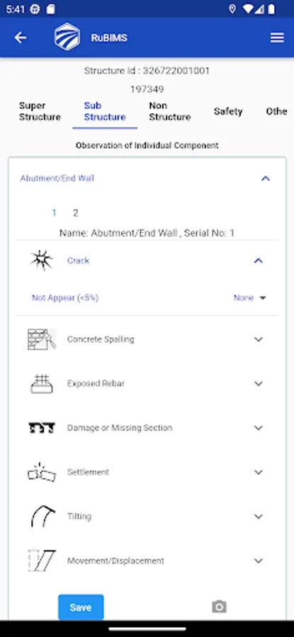 RuBIMS has a smartphone cum tablet-based application that facilitates collection of bridge data of each super-structure, sub-structure and non-structure elements. . This system is designed to allow an user to manage a bridge/culverts life span and further action to deliver uninterruptable service for local citizen. Each element will be marked based on the Condition State, from 1 to 5 which denotes Good, Fair, Poor, Severe and Unknown condition respectively. While using the application, all the data are taken with photographs will automatically be uploaded in RuBIMS software. The RuBIMS System has four user groups and two cooperating system. The Upazilla User/Inspector group, District user group, Regional user group and the HQ user group are responsible for operating the system as per role and permission. Upazilla user group are responsible for data collection and input in the system; the HQ user group will be the top-level users besides admin access. Other users will verify the data and forward to next level.