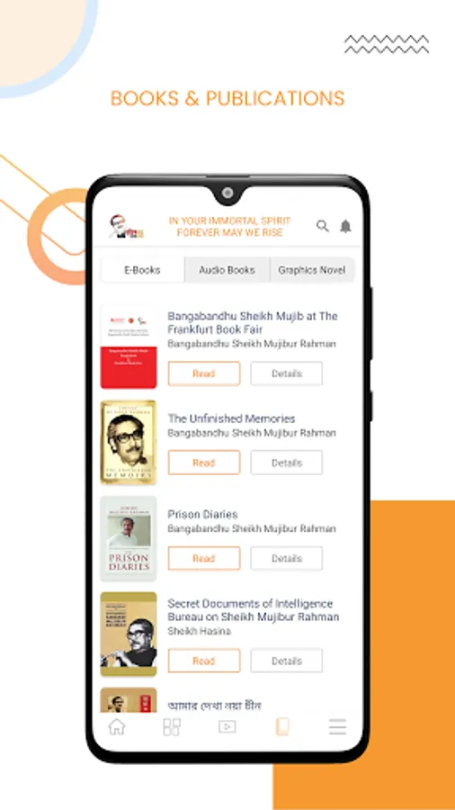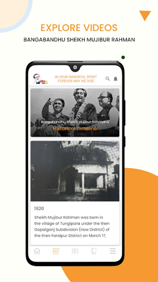The key feature of the app is the dynamic news feed that gathers all the contents and information at a glance. Watch Bangabandhu’s rare images, videos, speeches and so on. Other features of Mujib 100 App are: