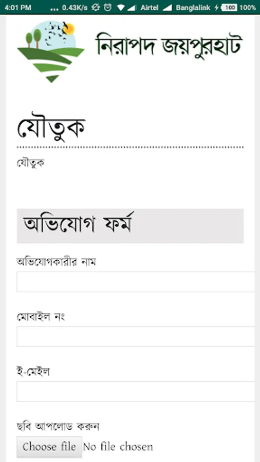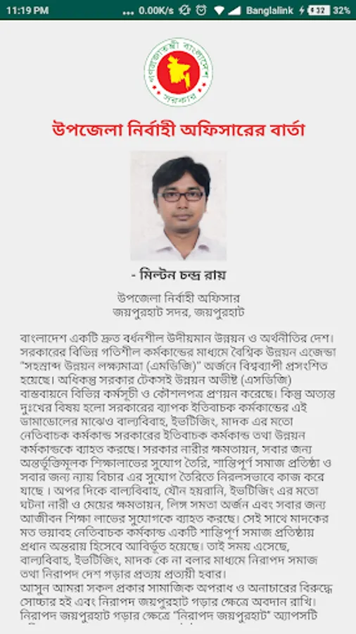 Therefore, the time has come to become convinced of the need to build a safe society and a safe country by not saying child marriage, eve-teasing, drugs. Let us speak out against all forms of social crime and injustice and contribute to building a safe Joypurhat. Safe Joypurhat Nirapod Joypurhat The work of the Upazila Administration, Sadar, Joypurhat will be successful only if the "Safe Joypurhat" app can make a small contribution.