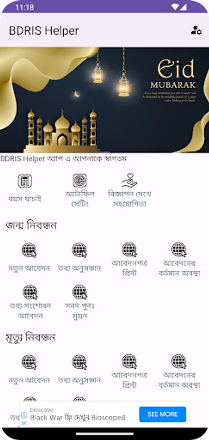 Disclaimer: We are not affiliated with Govt and Local Government divisions. Directly we do not provide all birth and death certificates; we just embed all Govt websites (bdris.gov.bd) to access easily. The content of this application is available free on public domains. For any kind of content removal request, contact us on our developer email (jolontojewel@gmail.com); We will look into your concern and take action from our side as soon as possible. We do not claim rights to any content in this application. All rights reserved to the content's respective owners.