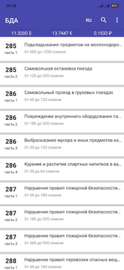 This appendix summarizes the main types of violations of the Traffic Rules in accordance with the Code of Administrative Violations of the Republic of Tajikistan