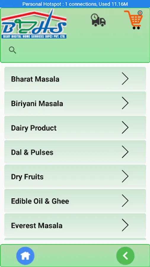 BIjay Digital Home Services (BDHS) app is for customers/members of Bijay Digital Home Services by which they can place orders for grocery, vegetables, non-veg items, cosmetics, snacks, etc. They will receive the ordered items through home delivery.