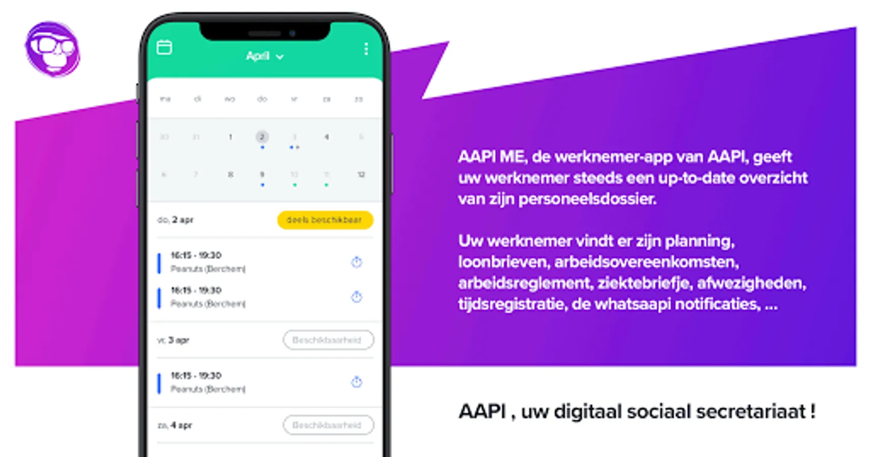 Aapi Me enables you to view your calendar, personal details, your work schedule, contracts and more as an employee of a catering operator.