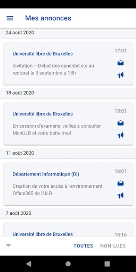 - Access to the mobile website of the ULB (social networks, directory, etc.)
