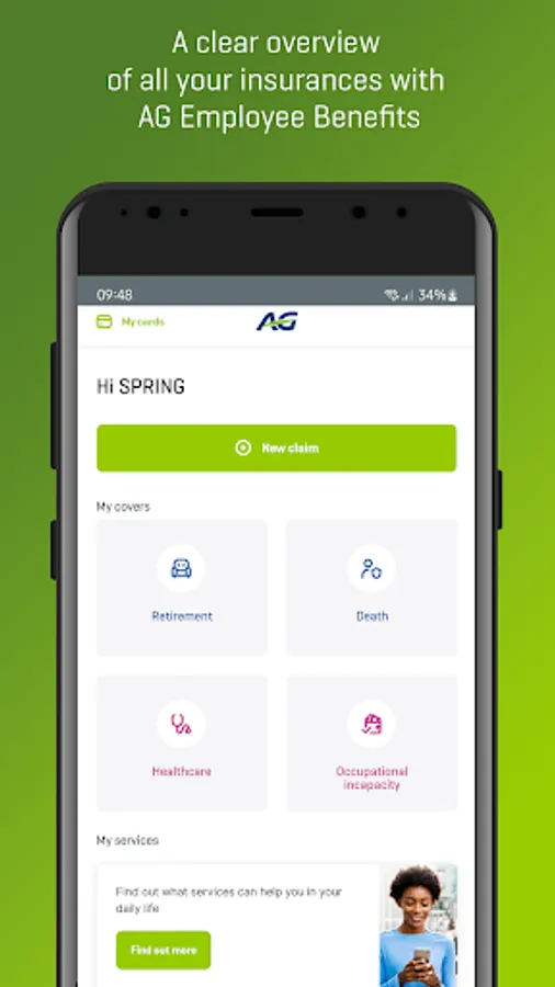 With the MyAG Employee Benefits app, you can quickly and easily check the insurance covers you have through your employer. It's your go-to place to get an overview of all your fringe benefits, send in claims, make requests and contact AG. This app gives you access to your secure personal area.
