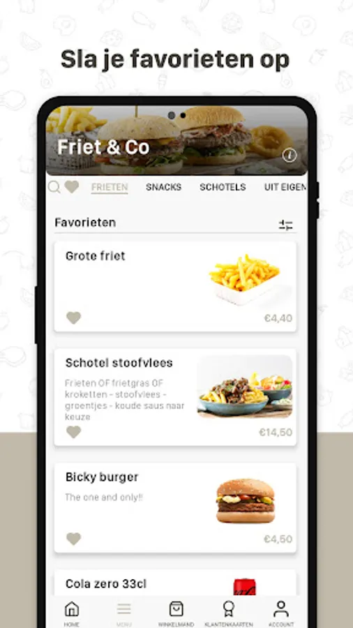 Via the favorites function or your order history you are only a few finger presses away from a new order. Really handy!