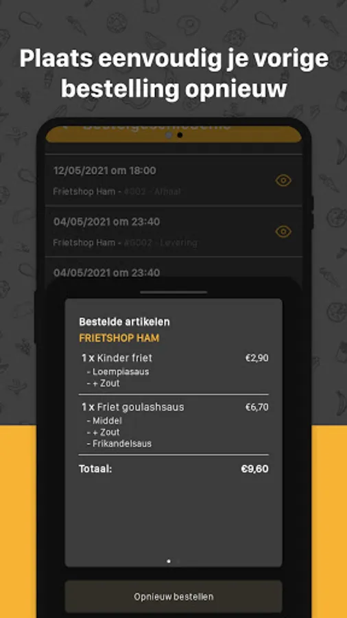Via the favorites function or your order history you are only a few finger presses away from a new order. Really handy!