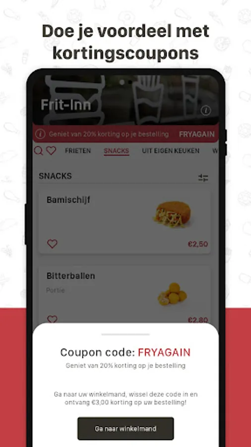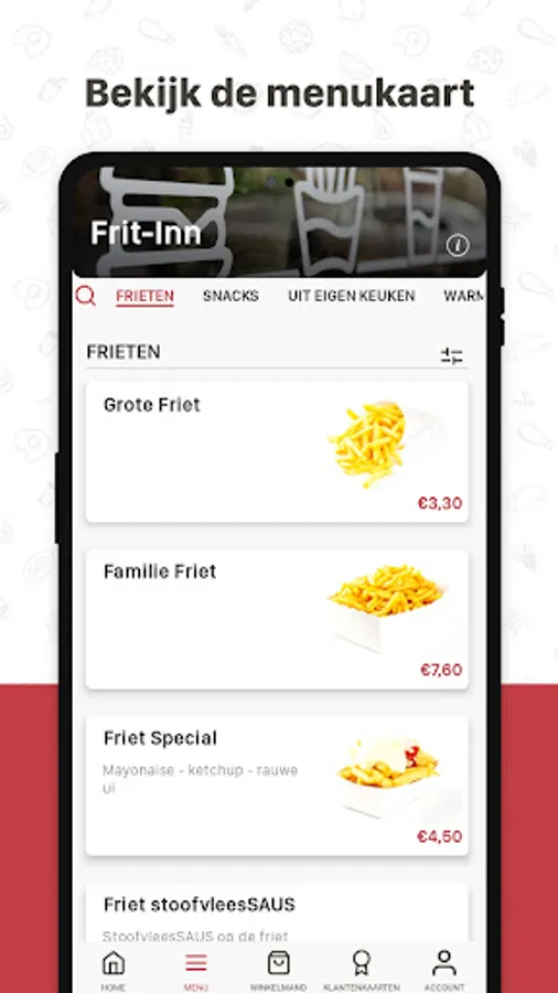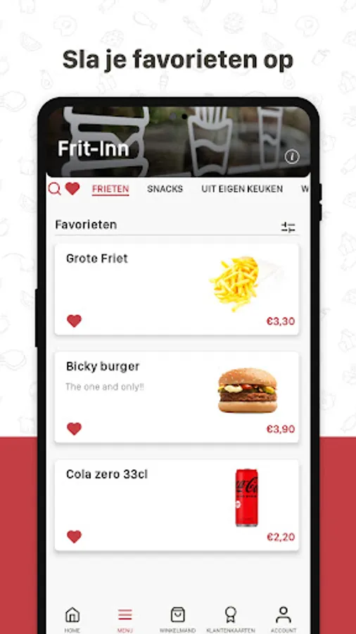 A delicious pack of fries, tasty burger or tasty sandwich without a long queue? Download the Frit-Inn app and order online.