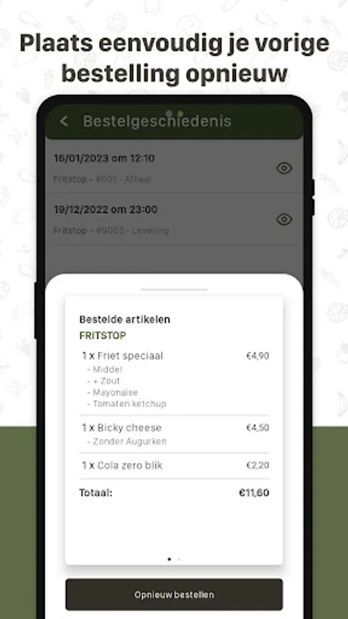Via the favorites function or your order history you are only a few finger presses away from a new order. Really handy!