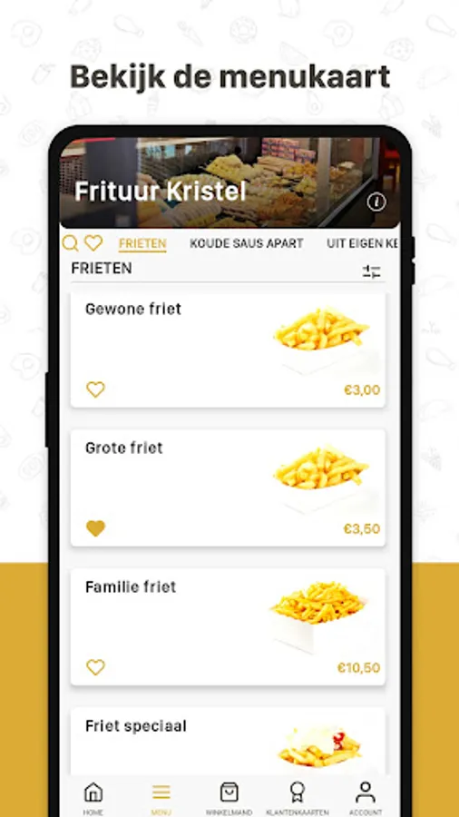 Via de favorieten functie of je bestelgeschiedenis ben je slechts enkele vingerdrukken verwijderd van een nieuwe bestelling. Echt handig!