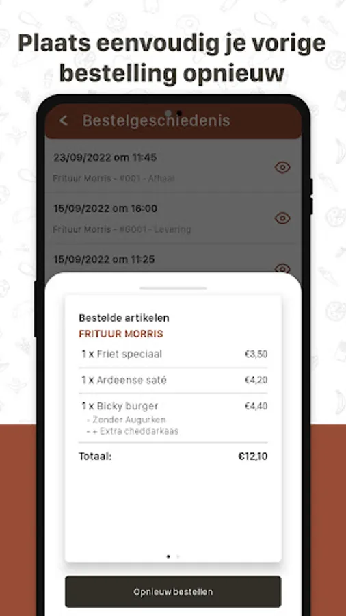 Via the favorites function or your order history you are only a few finger presses away from a new order. Really handy!