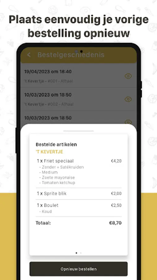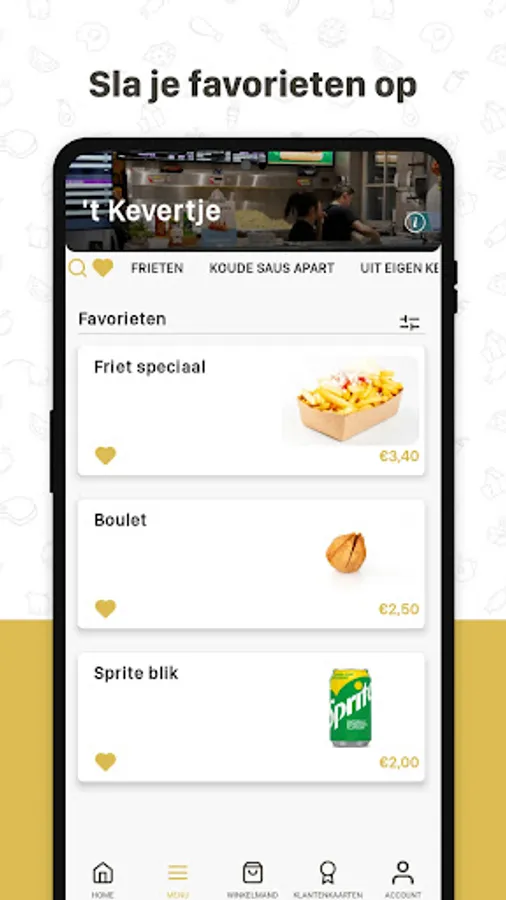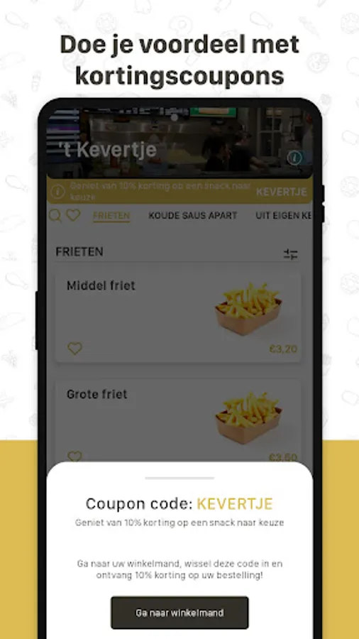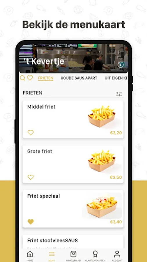 Een heerlijk pak friet, lekkere burger of smakelijk broodje zonder lange wachtrij? Download de App van ‘t Kevertje en bestel online.