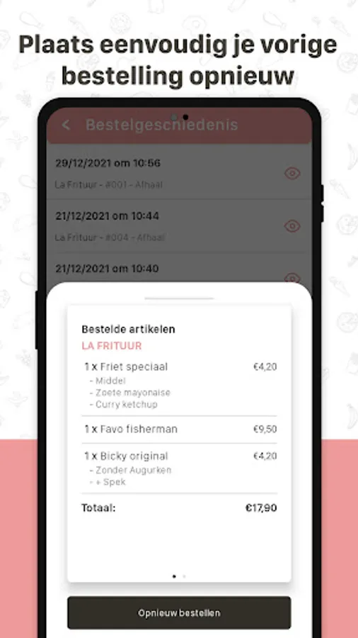 Via the favorites function or your order history you are only a few finger presses away from a new order. Really handy!