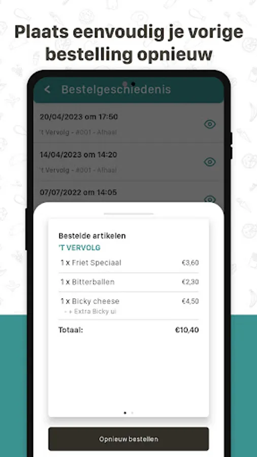 Via de favorieten functie of je bestelgeschiedenis ben je slechts enkele vingerdrukken verwijderd van een nieuwe bestelling. Echt handig!