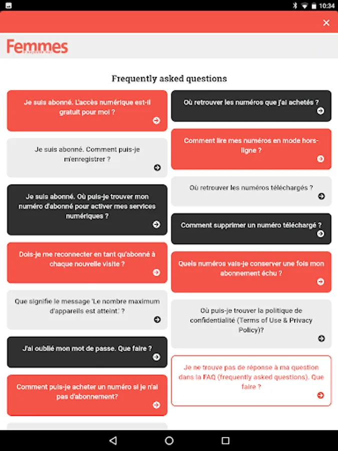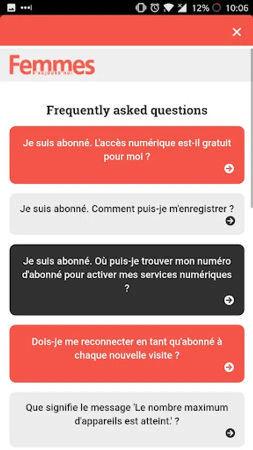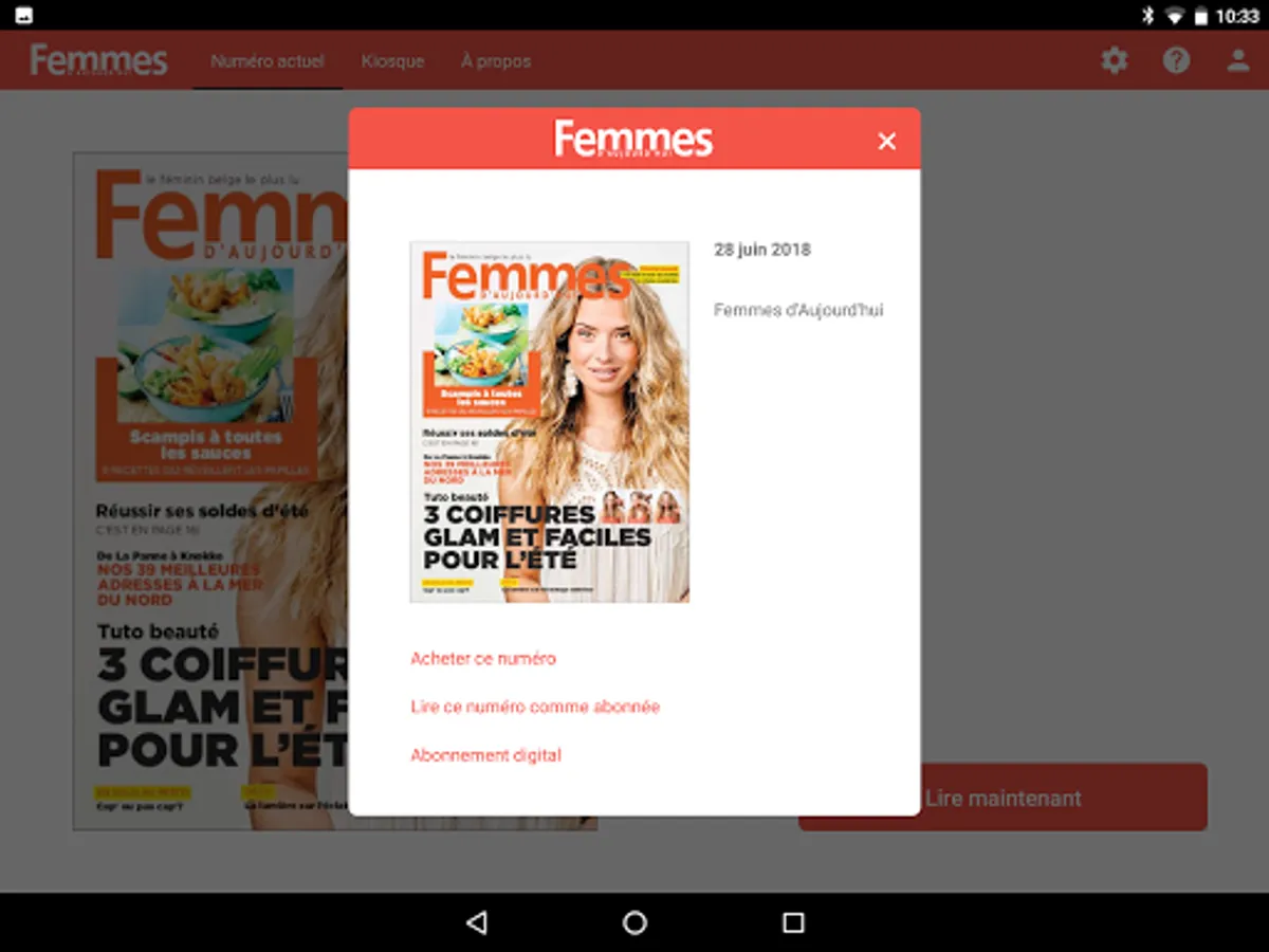 The Women of Today subscribers have free access to Women Today numbers on their tablet and smartphone. Log in with your femmesdaujourdhui.be account or register within the application.