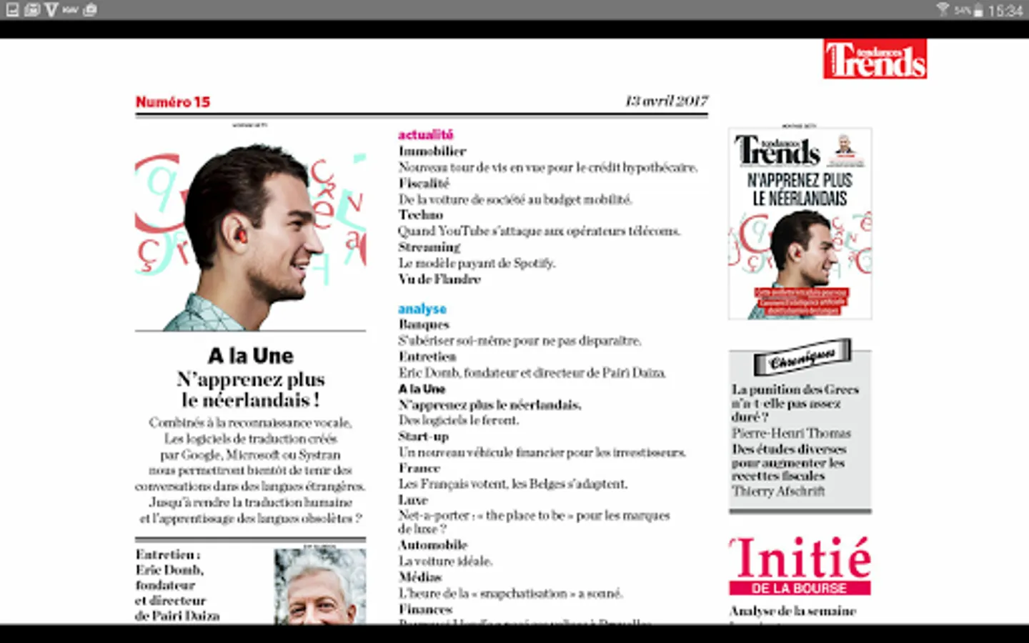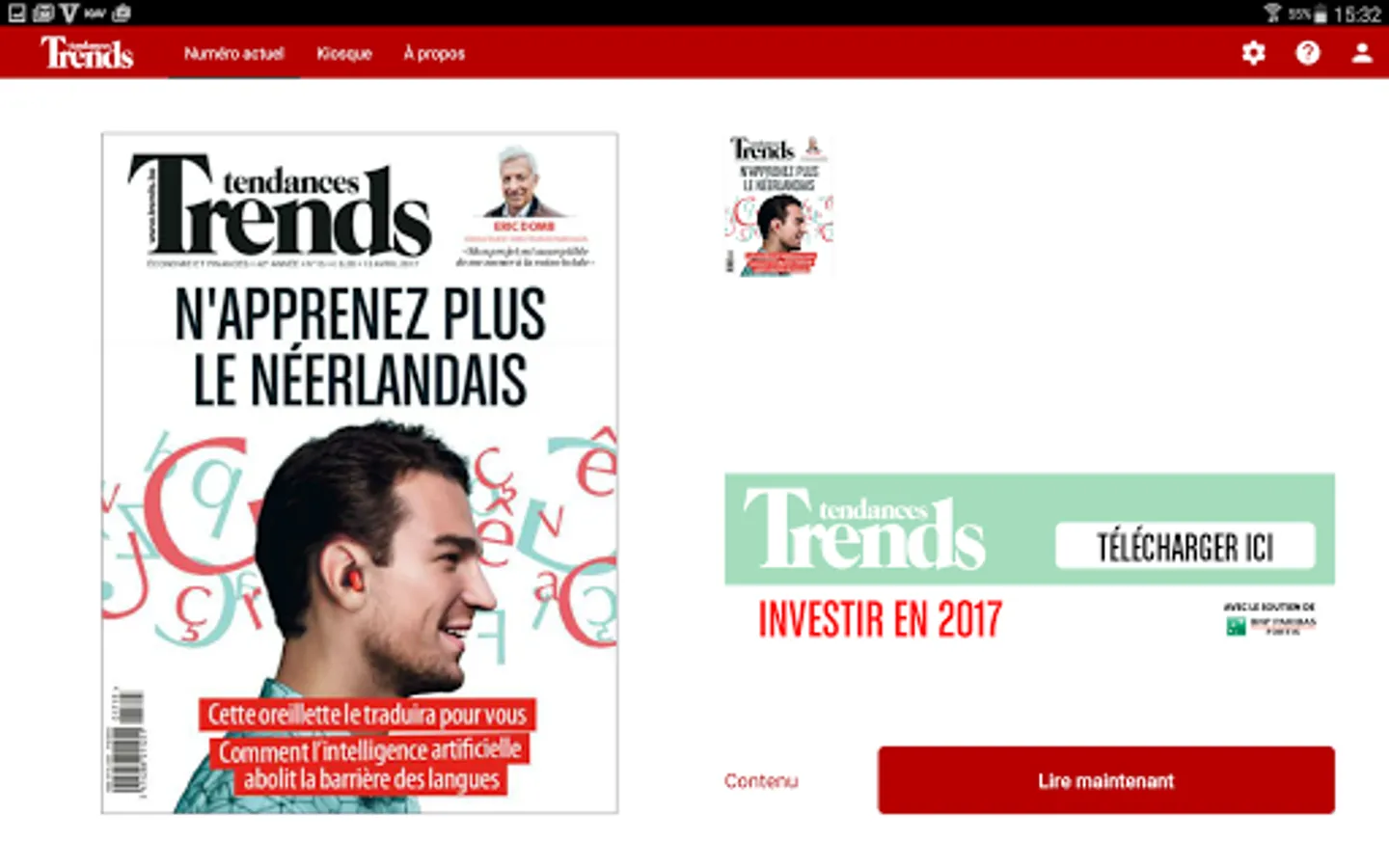 Read Trends-Tendances on your smartphone and tablet with this free app. Choose the layout that suits you best: the layout of the paper magazine or that specifically for smartphones and tablets.