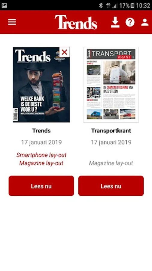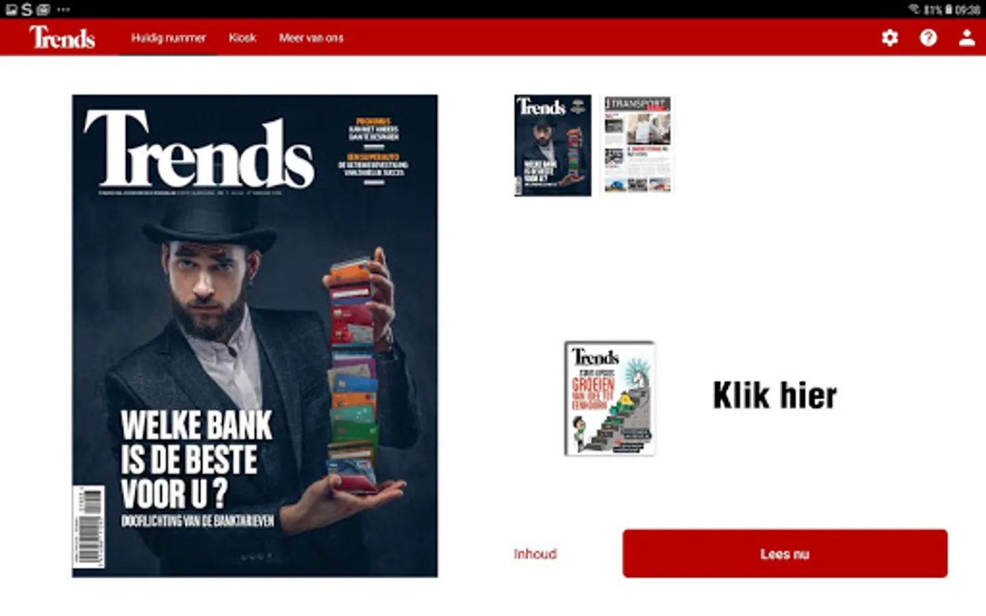 Subscribers to the paper version read their Knack package for free on their tablet or smartphone. You can activate this service via the app or by means of your registration on Trends.be.
