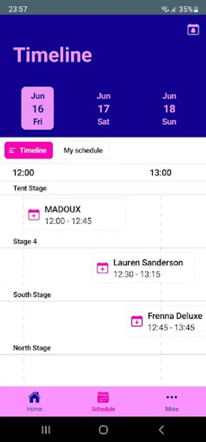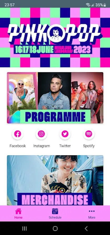 View the full line-up and select your favorite acts from the timeschedule: before start of the show you will receive a notification so you don't have to miss anything! Explore the different maps and discover new places to eat & drink. You will also find all the latest Pinkpop-related news here.