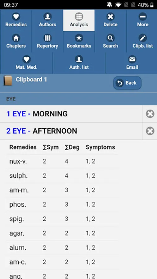 • Continue in RadarOpus and add, delete, underline symptoms and analyze, save clipboards in your patient file.