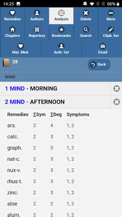 - Continue in RadarOpus and add, delete, underline symptoms and analyze, save clipboards in your patient file.
