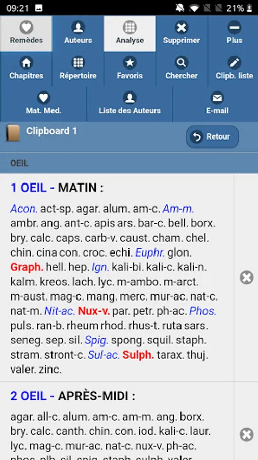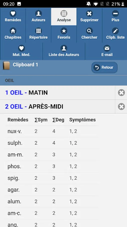 • Email the clipboard content to your RadarOpus program where you can list it using other analysis methods, compare remedies and results and save it to the patient file.