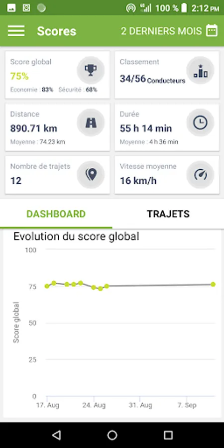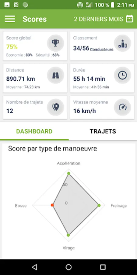 - Your Safety and Eco-driving scores, available over a predefined period or for a trip.
