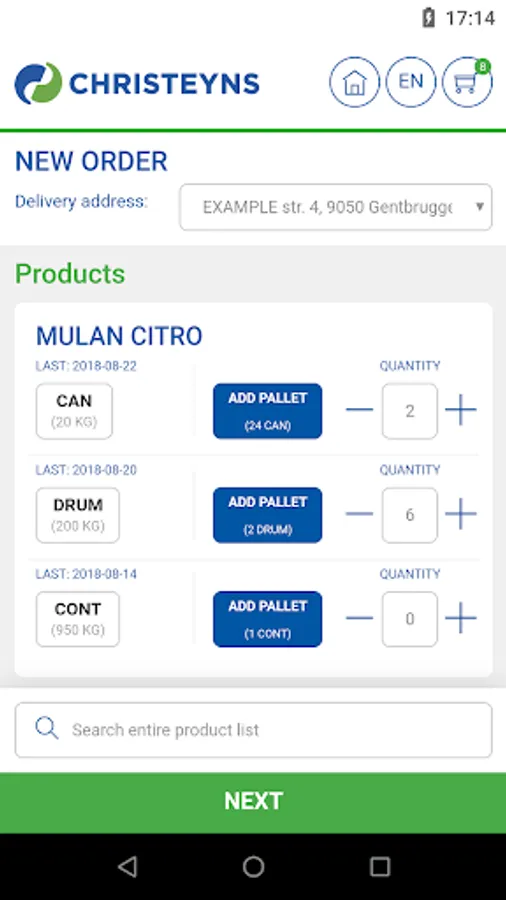 With this app customers can order Christeyns products. The products can be searched in the app. The app also offers waste collection for Christeyns customers.