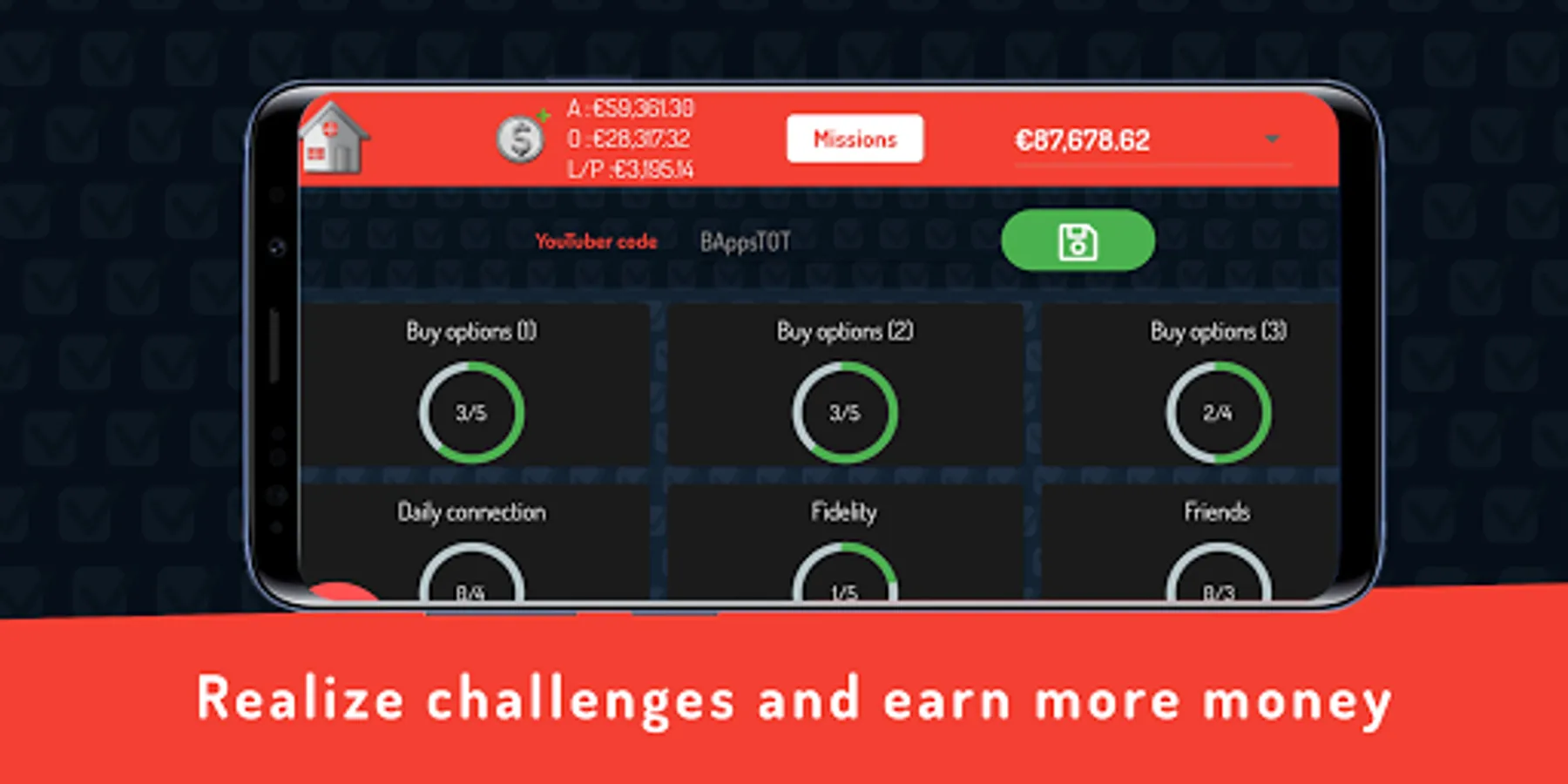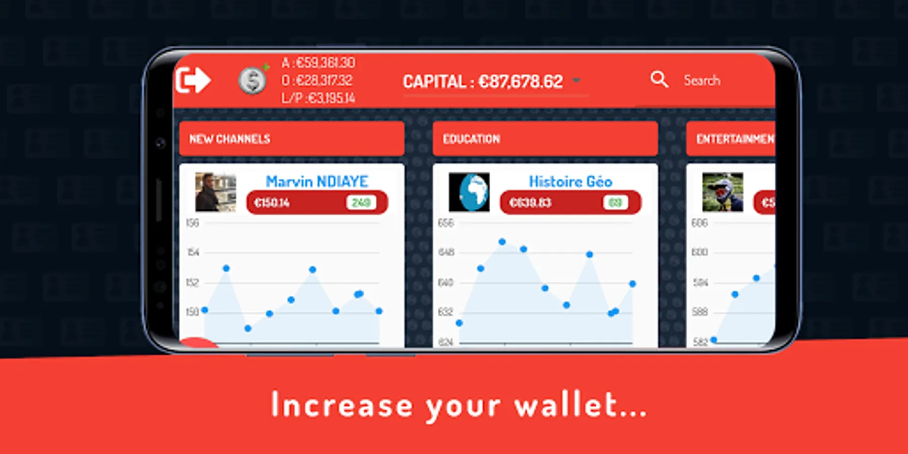 Buy and resell virtual options of YouTubers and act on their stock market value by watching their videos and subscribing to their channel.