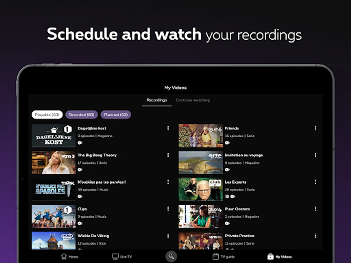 · Watch more than 80 channels live or in replay on all networks in Belgium and the European Union