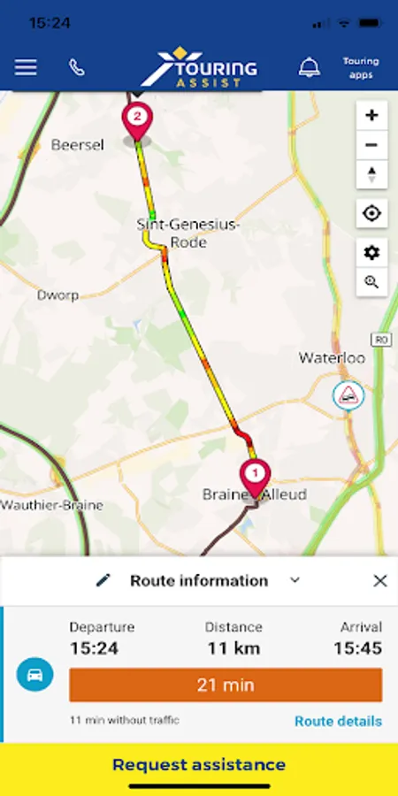 The Touring Assist app now integrates the functionalities of the Touring Mobilis app. You will thus have a single app, integrating your route planners, as well as the possibility to request assistance.