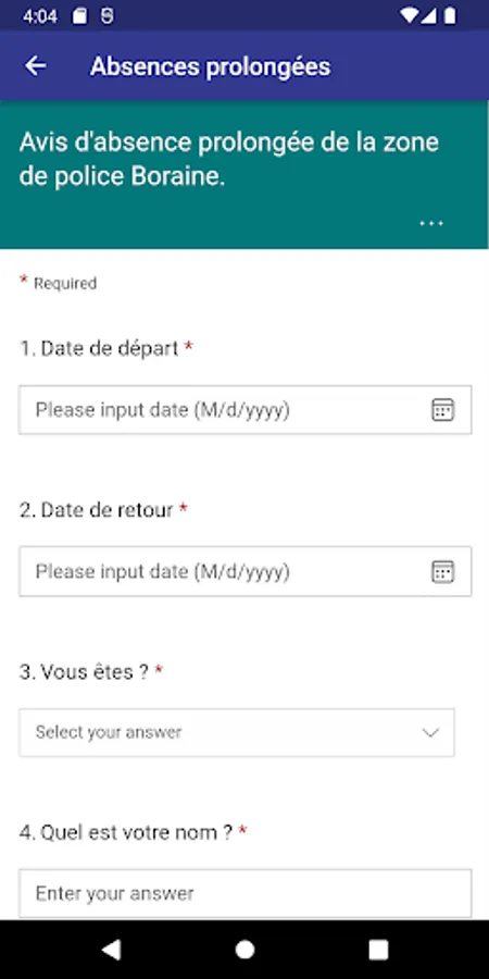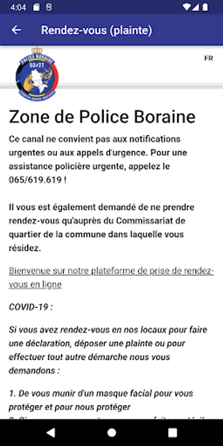 This application aims to facilitate exchanges between citizens and the Boraine Police Zone.