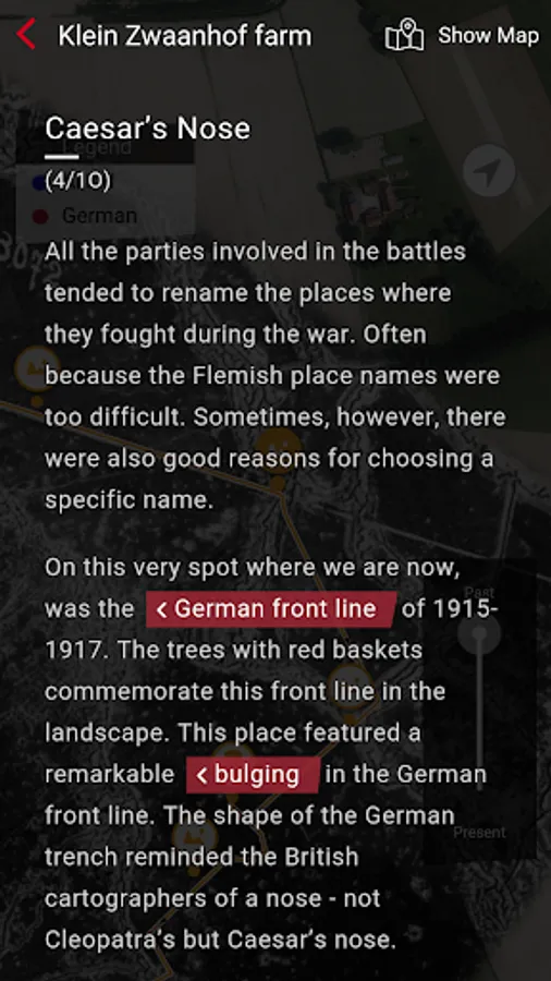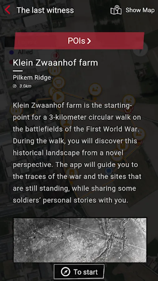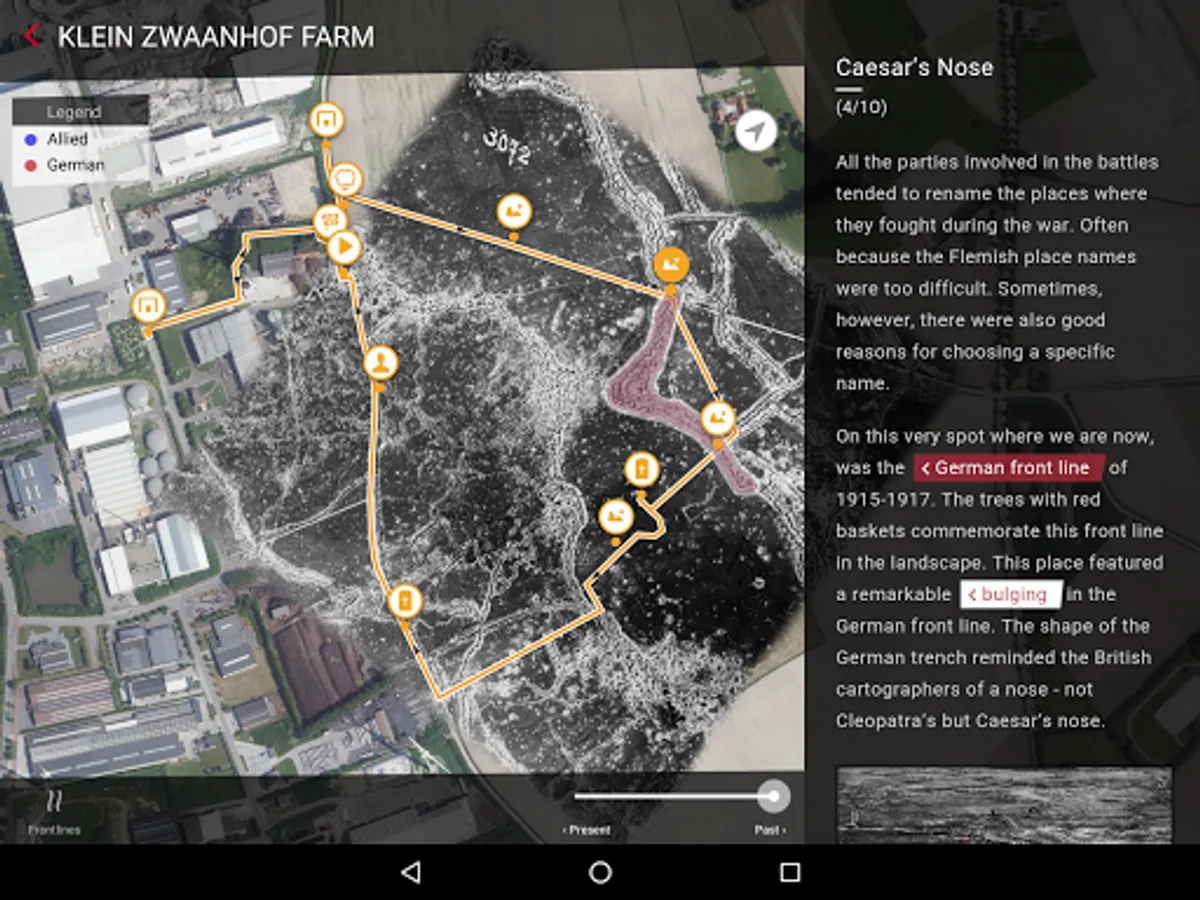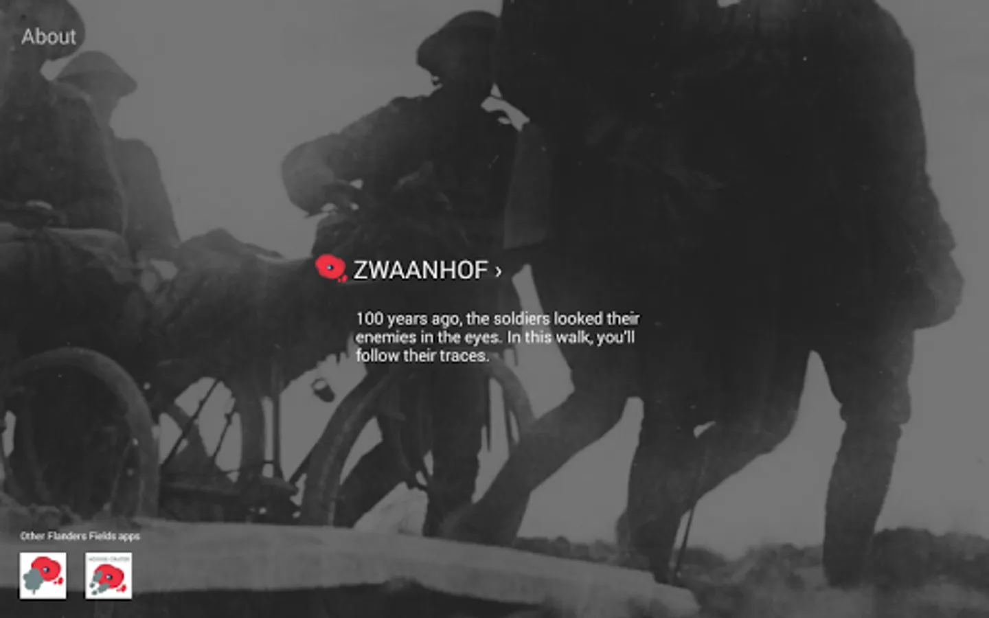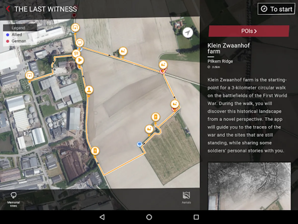 This app helps you explore the war landscape around Ypres. It will immerse you into the First World War and help you unveil the vestiges of battle and the historic sites. More exciting still, the app allows you to virtually walk on top of the front line trenches. So that you experience how incredibly close the front lines were to one other and how dense the trench network was.