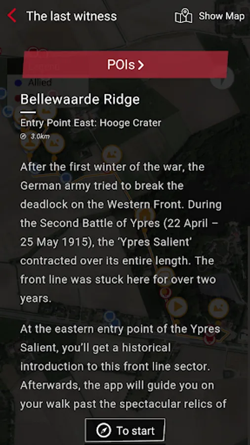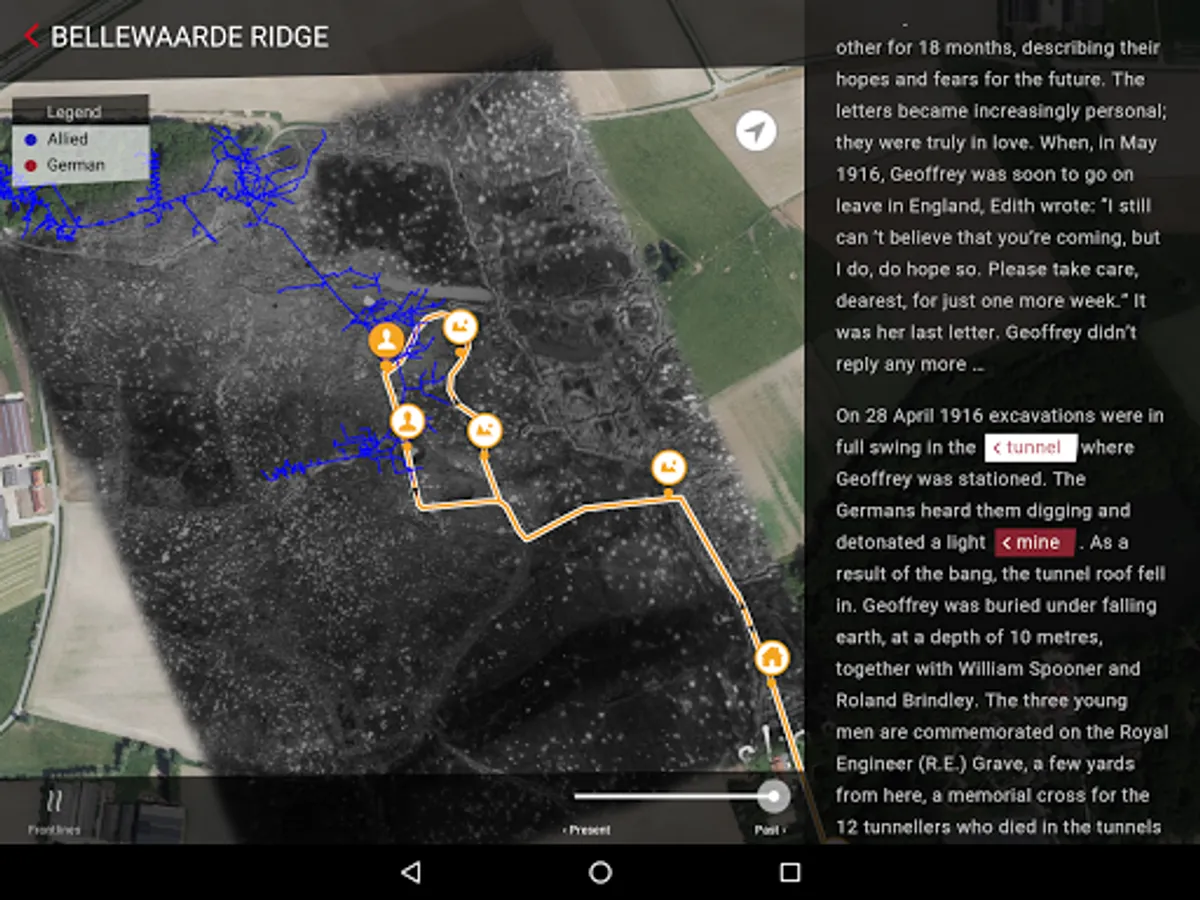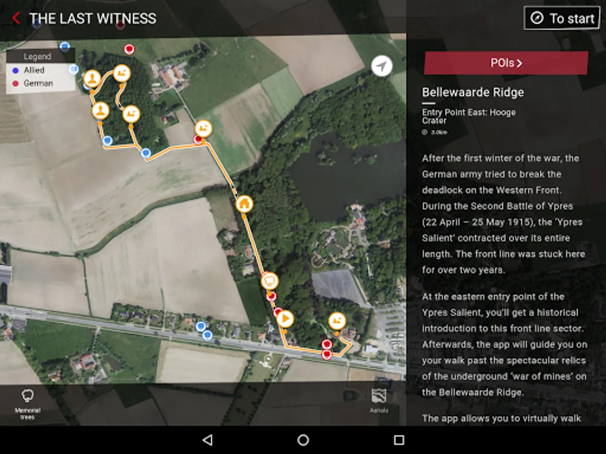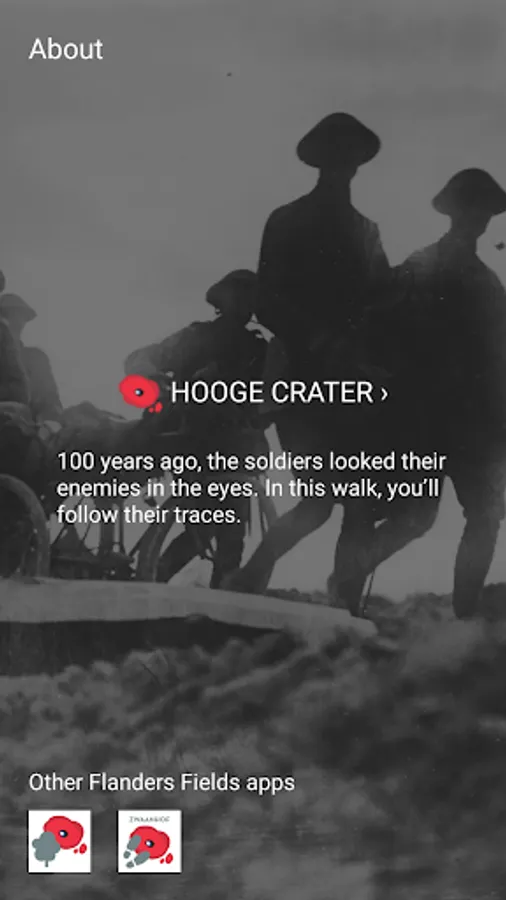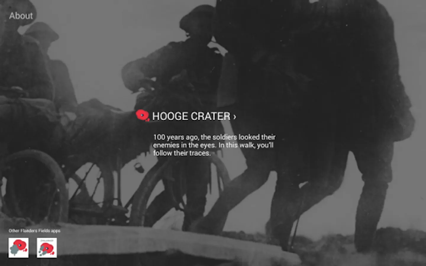 This app helps you explore the war landscape around Ypres. It will immerse you into the First World War and help you unveil the vestiges of battle and the historic sites. More exciting still, the app allows you to virtually walk on top of the front line trenches. So that you experience how incredibly close the front lines were to one other and how dense the trench network was.