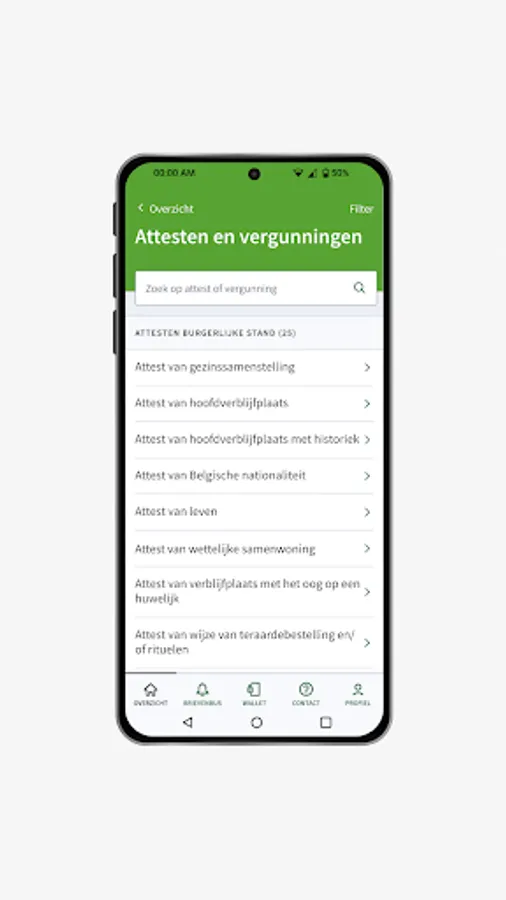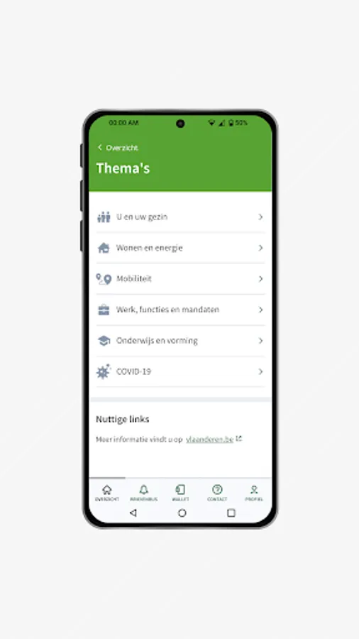 All functionalities of the general My Citizen Profile app of the Flemish government can also be found in the As version.