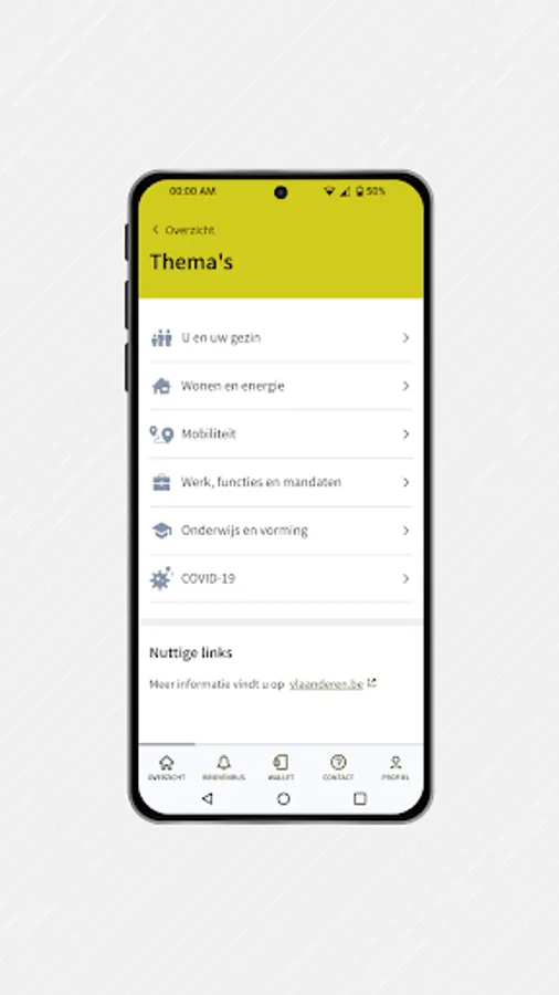 All functionalities of the general My Citizen Profile app of the Flemish government can also be found in the Duffel version.