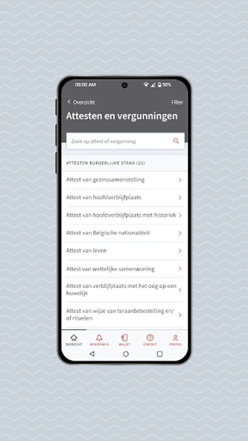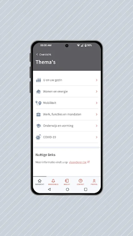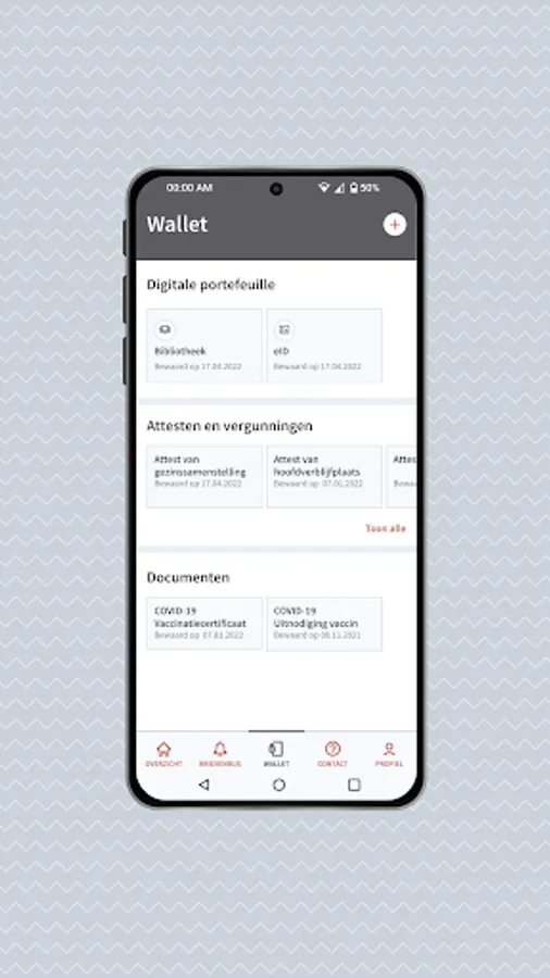 All functionalities of the general app My Citizen Profile of the Flemish government can also be found in the Grimbergen version.