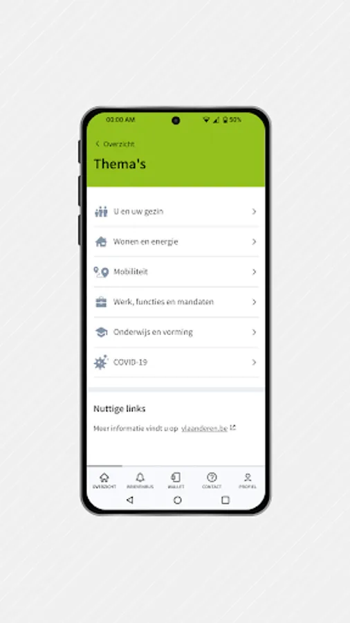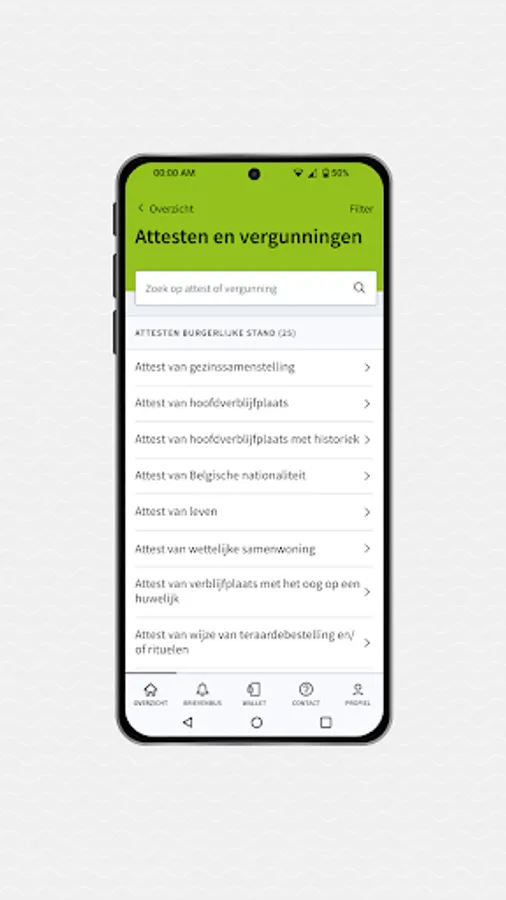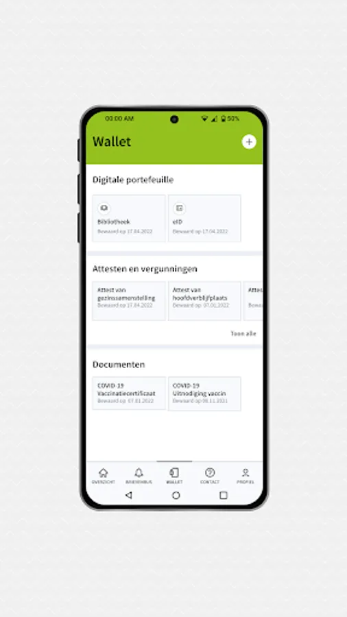 All functionalities of the general My Citizen Profile app of the Flemish government can also be found in the Sint-Katelijne-Waver version.
