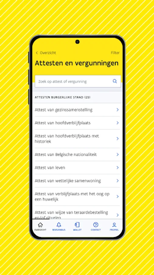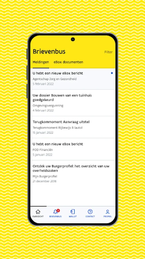 Mijn Burgerprofiel is hét online overheidsloket. Volg via de app je dossiers op, blijf op de hoogte van recent nieuws, ontvang eBox documenten, vraag attesten aan en gebruik je persoonlijke wallet.
