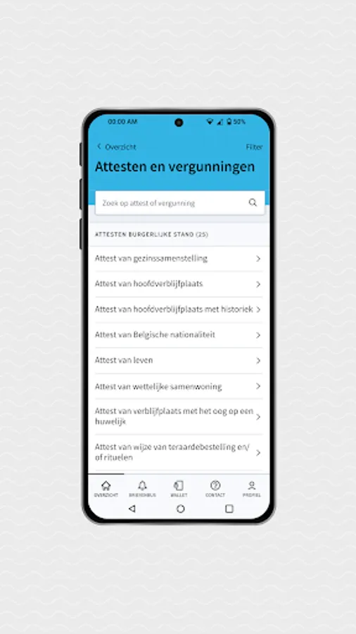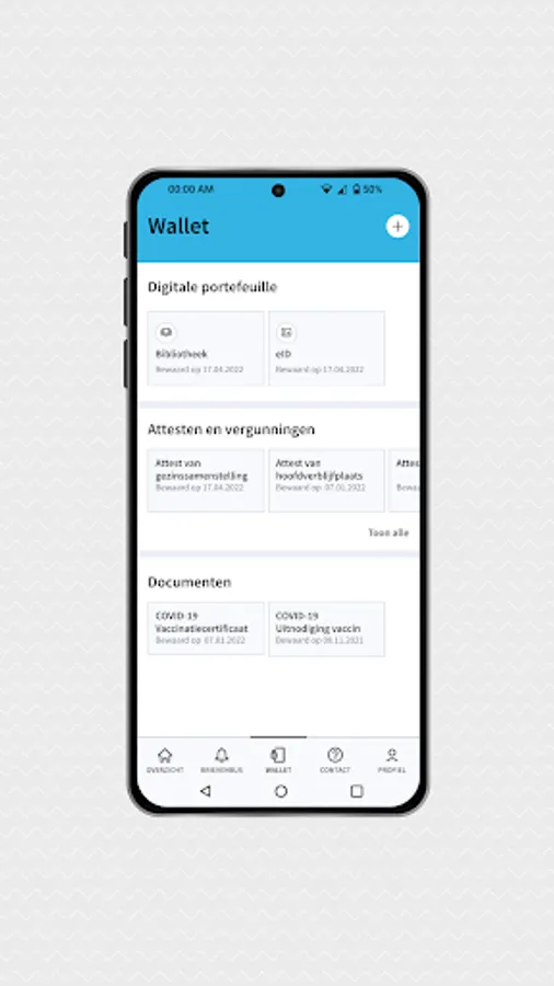 All the features of the general My Citizen Profile app from the Flemish government are also available in the Wevelgem version.